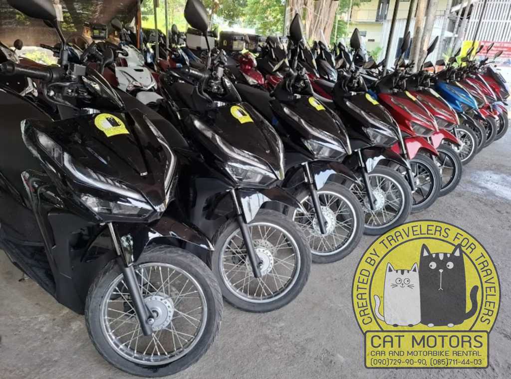 Cat Motors is a motorbike and scooter rental shop in Chiang Mai, Thailand. We help travelers and long-stay visitors get reliable wheels for everyday city rides, mountain routes, and longer trips around Northern Thailand. Our fleet covers simple automatic scooters, more powerful models, enduro bikes, and big bikes, so you can choose a machine that matches your route, experience, and budget.
